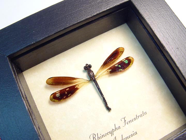 Rhinocypha fenestrata Jewel damselfly Framed Taxidermy Display