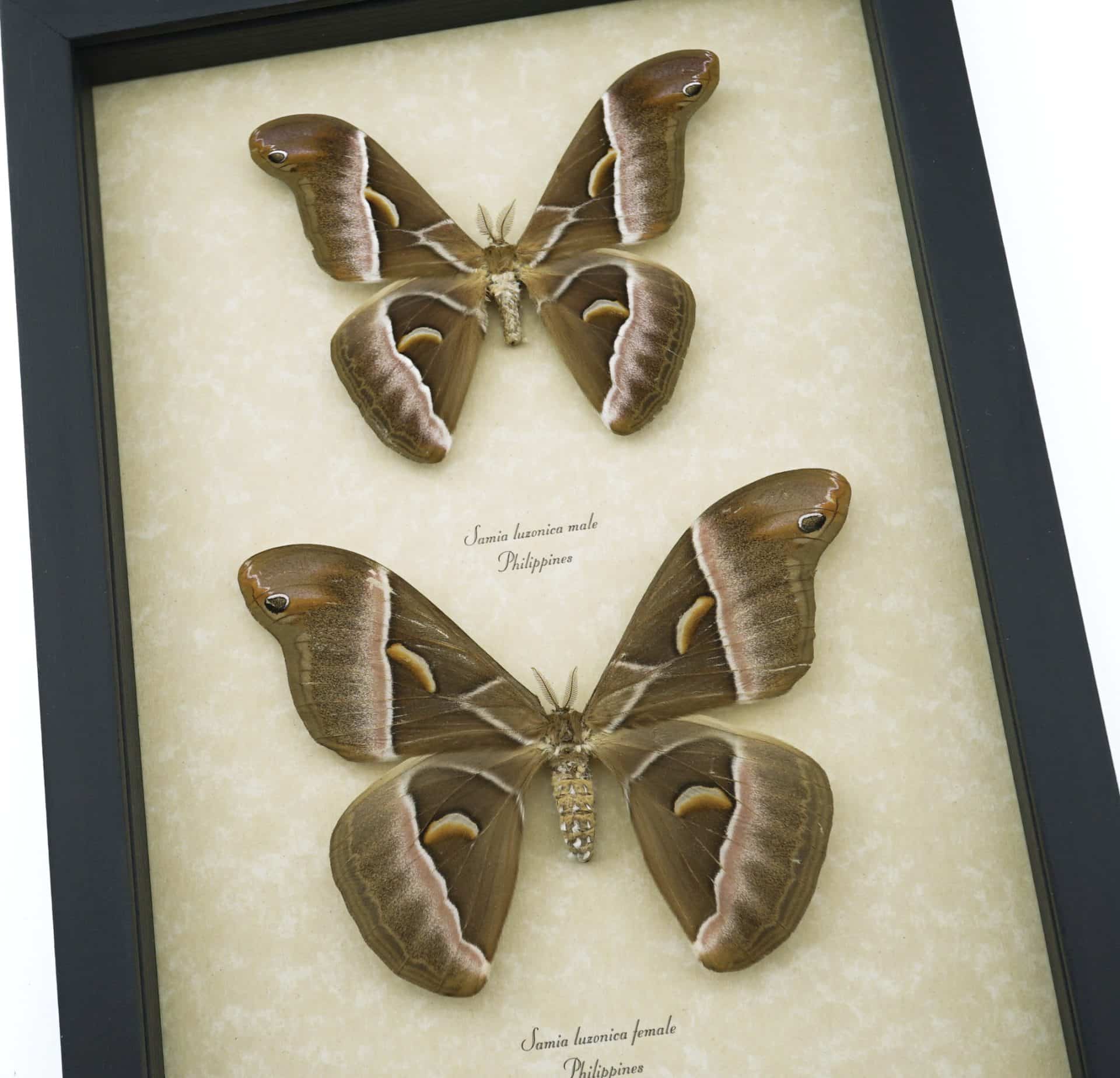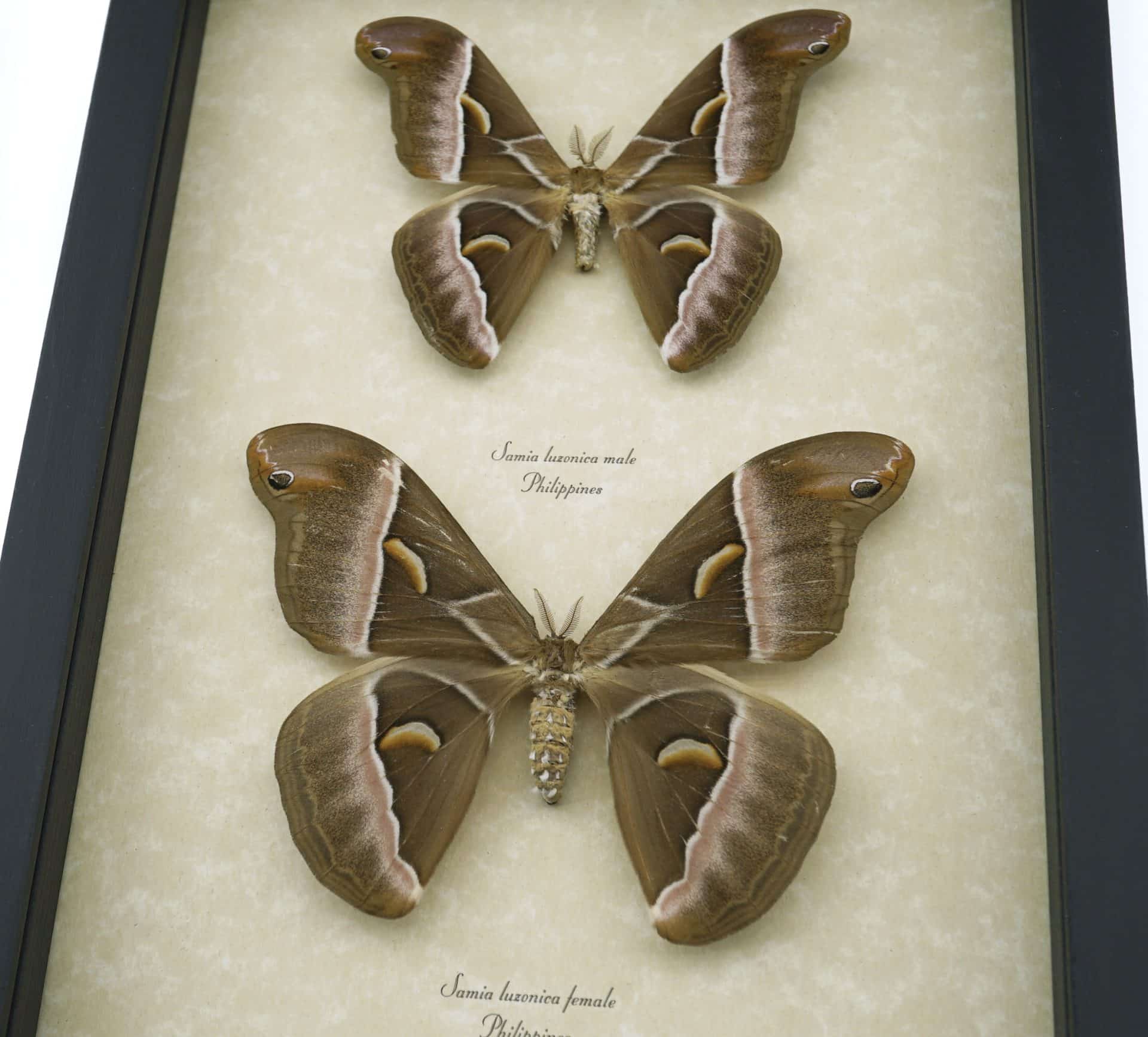 Samia luzonica Pair Moth Giant Silk Moths Framed Taxidermy Display