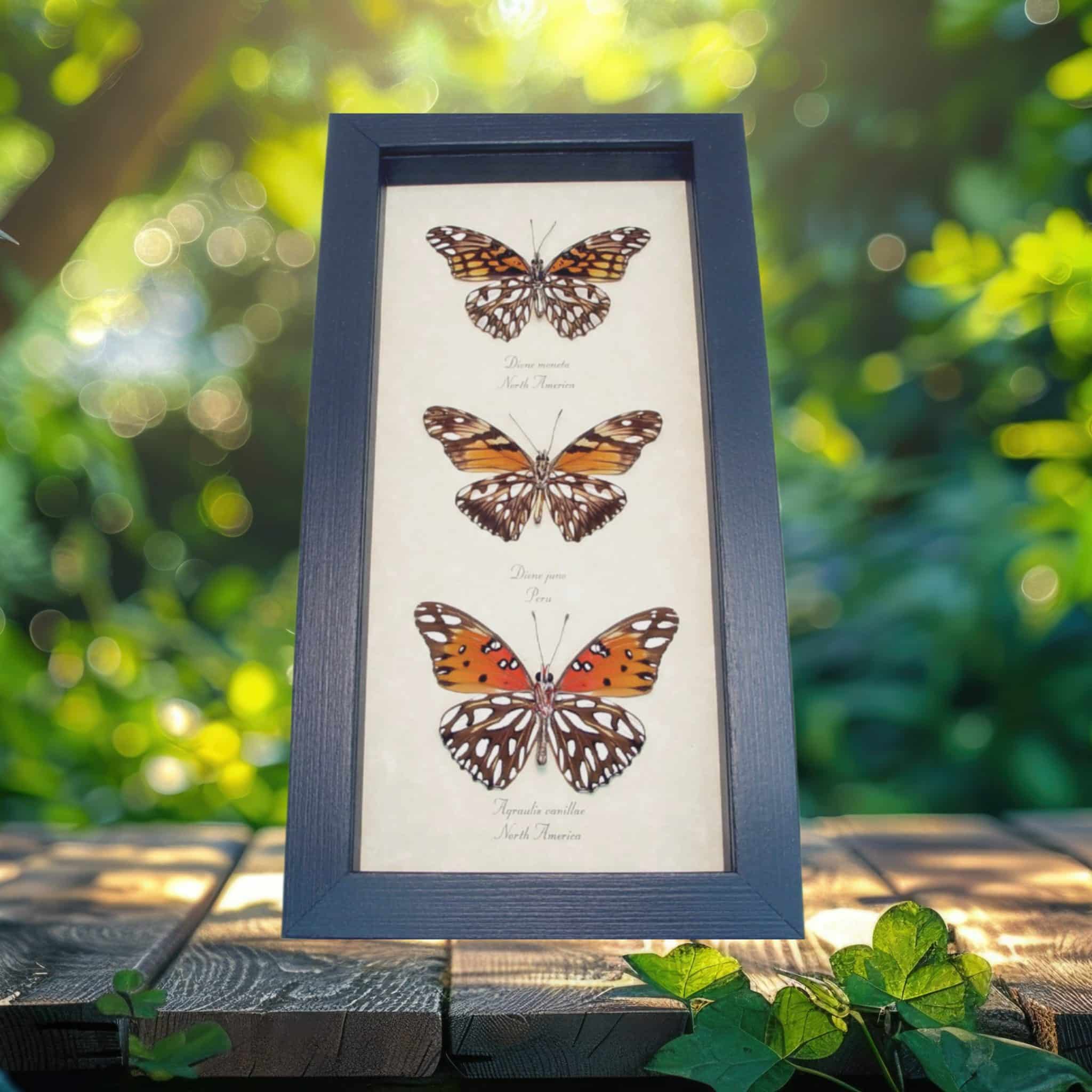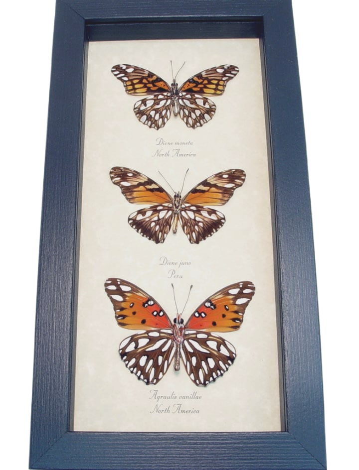 Silver Spot Collection Agraulis vanillae Dione juno Framed Butterflies Taxidermy Display
