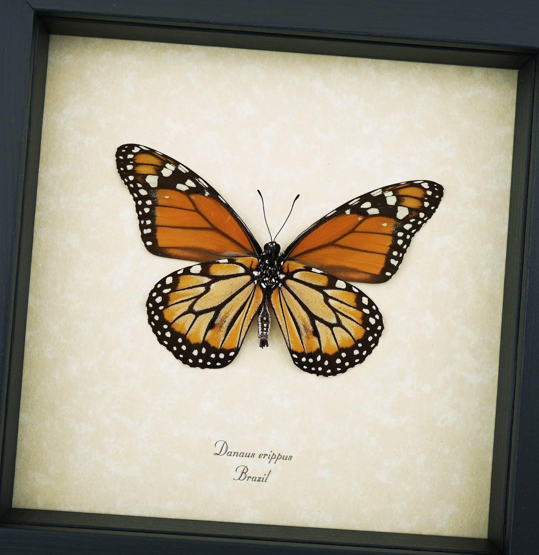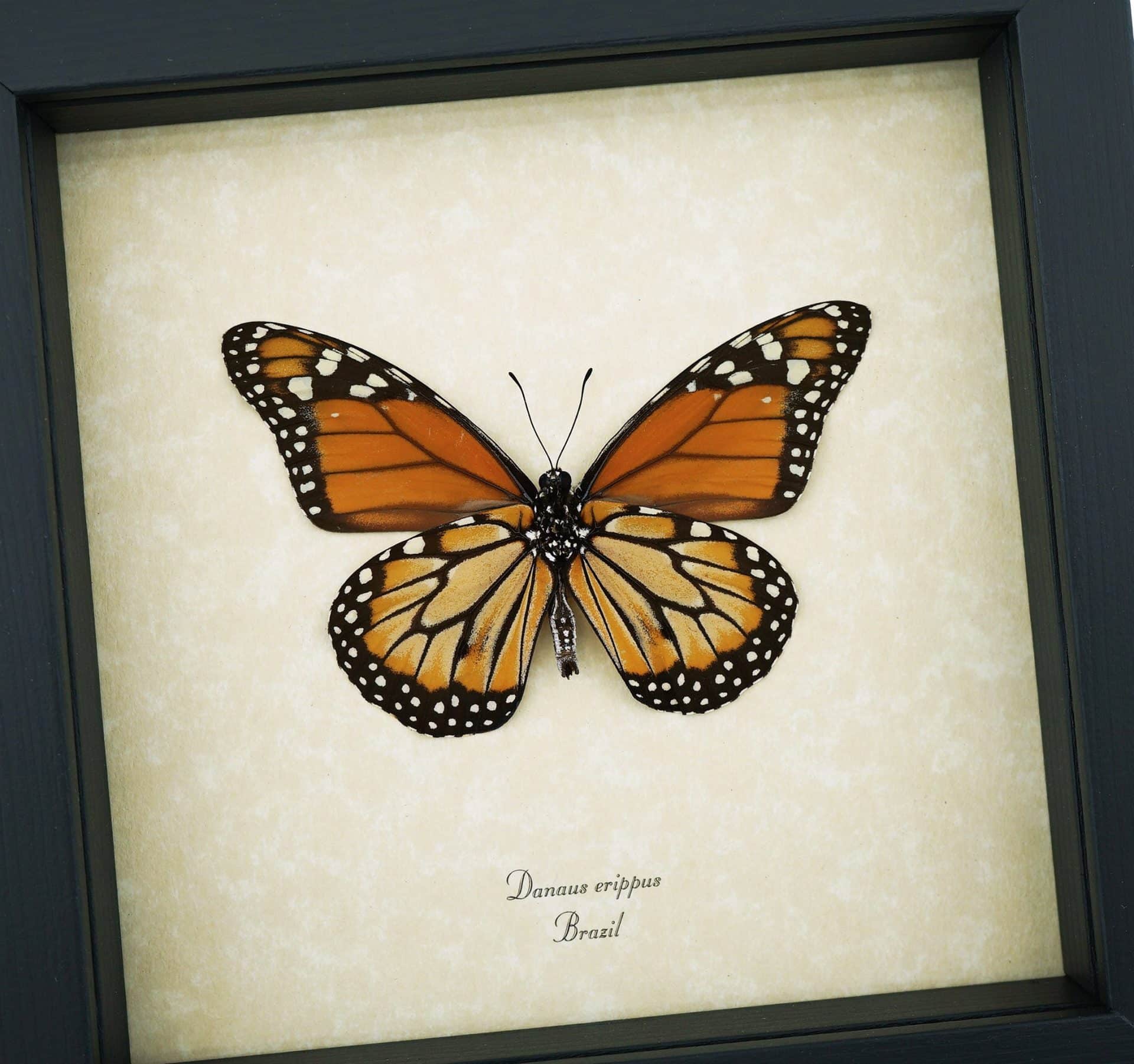Southern Monarch Framed Brazil Butterfly Danaus erippus male verso Taxidermy Display