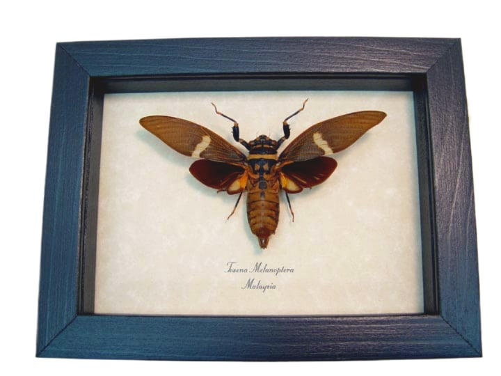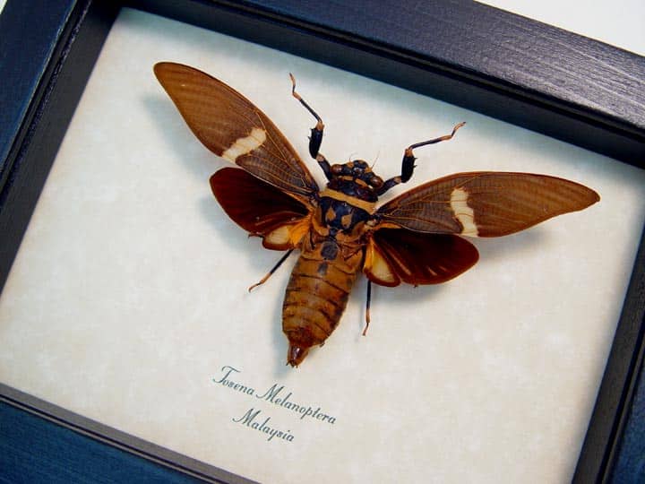 Tosena melanoptera Bat Winged Cicada Framed Insect Taxidermy Display