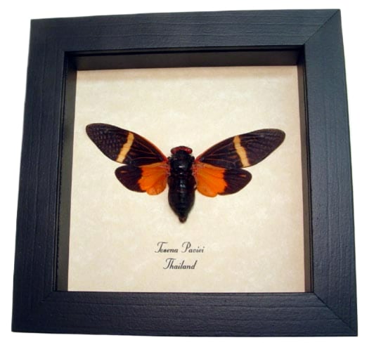 Tosena paviei Orange Halloween Cicada Framed Insect Taxidermy Display