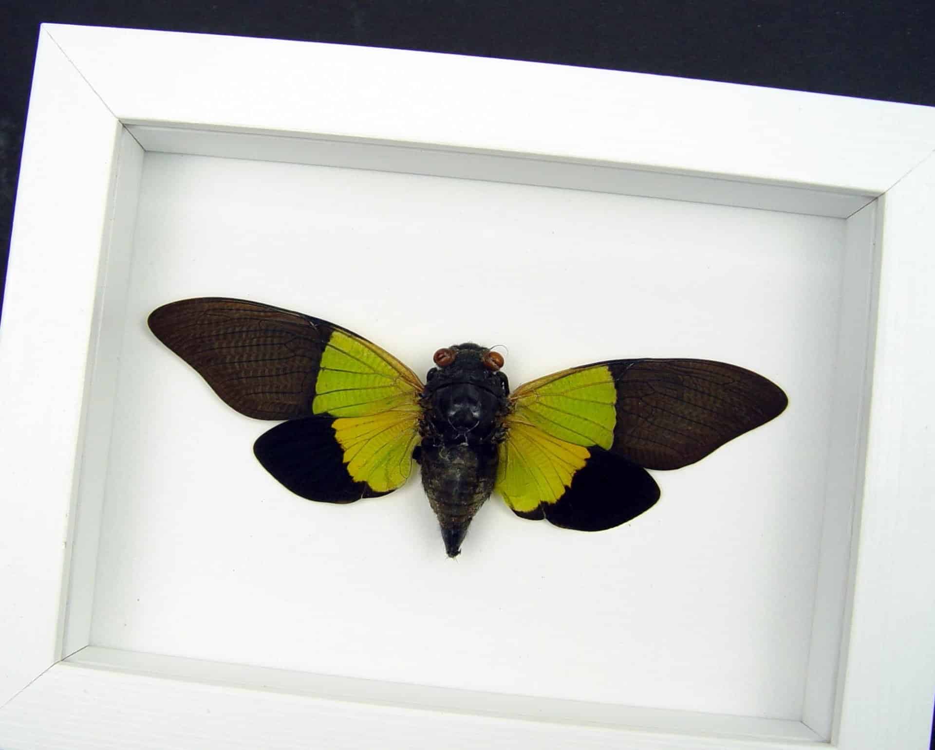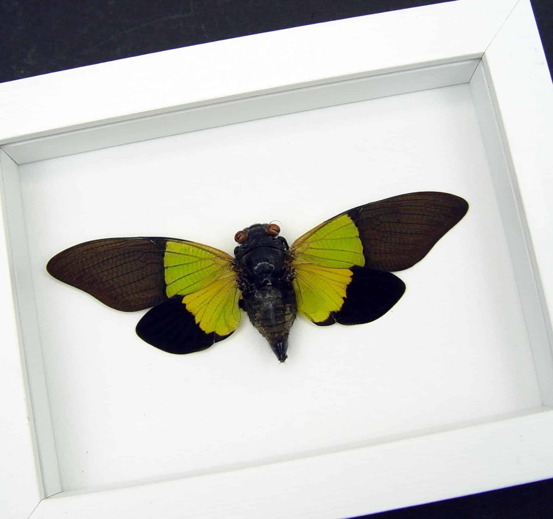 Trengganua sybylla Leaf Green Cicada Framed Insect Taxidermy Vibrant White Display