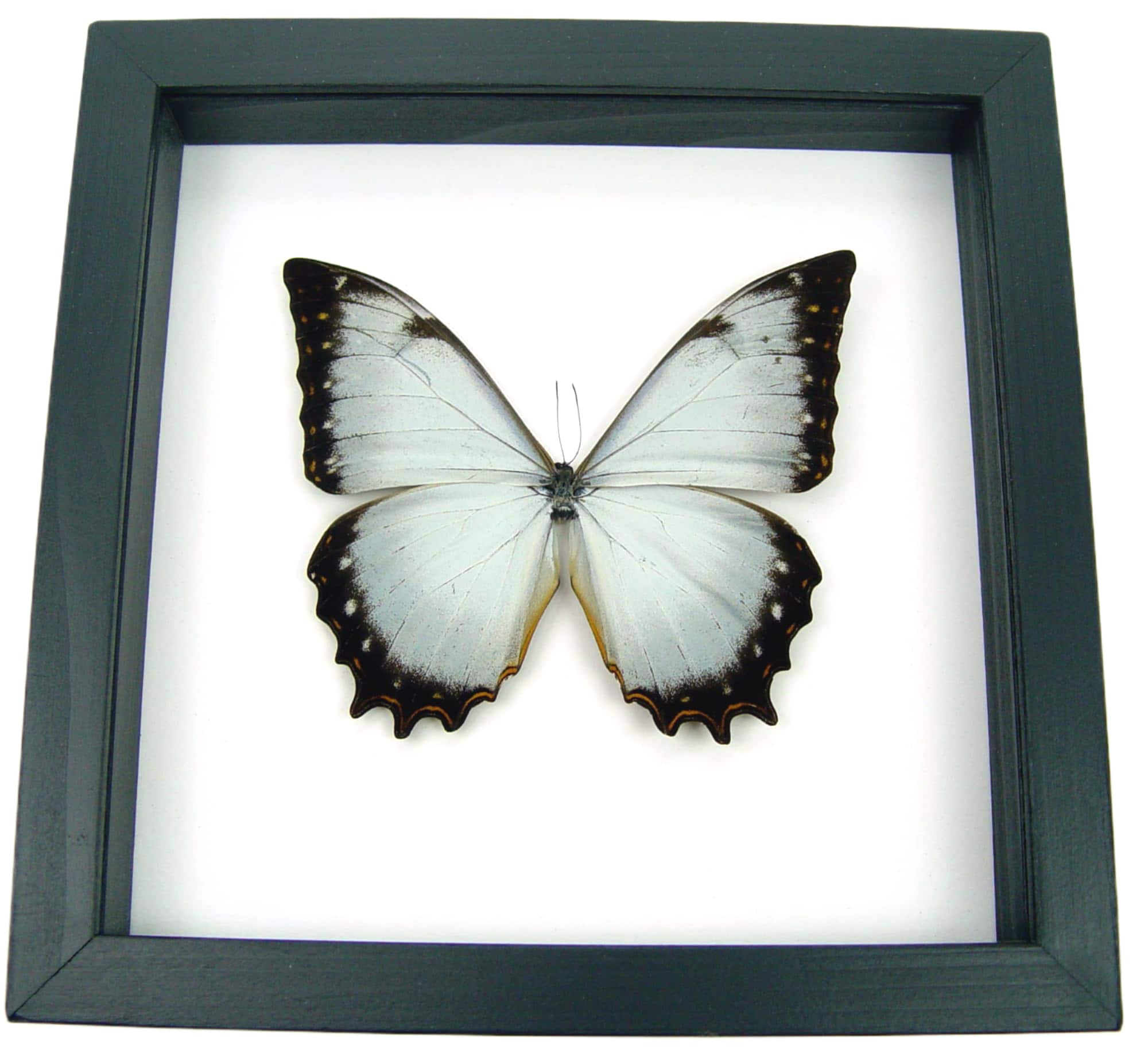 White Morpho Theseus Juturna Butterfly Framed Taxidermy Classic Black Display