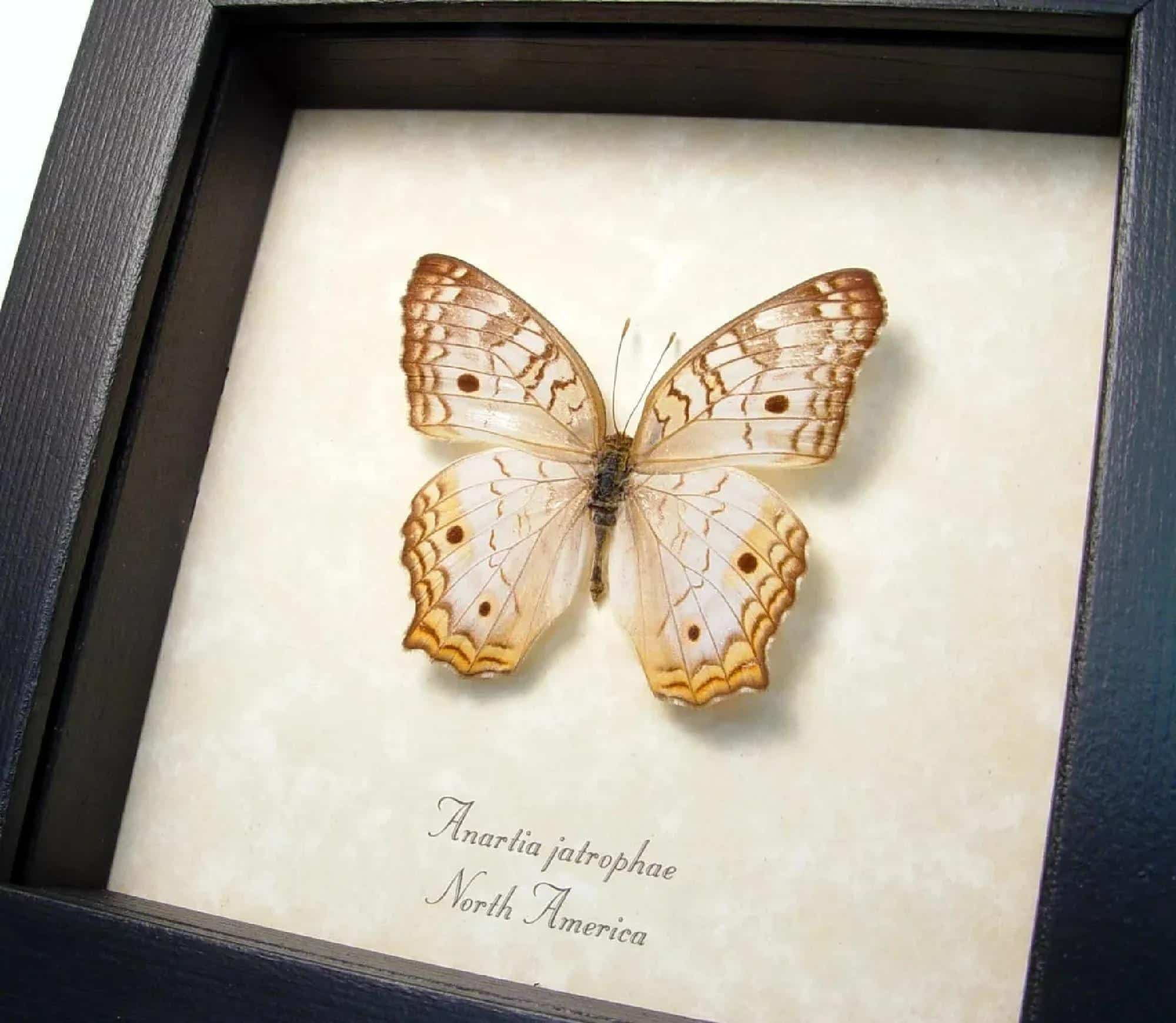 Real White Peacock Butterfly Anartia jatrophae Framed Taxidermy Display