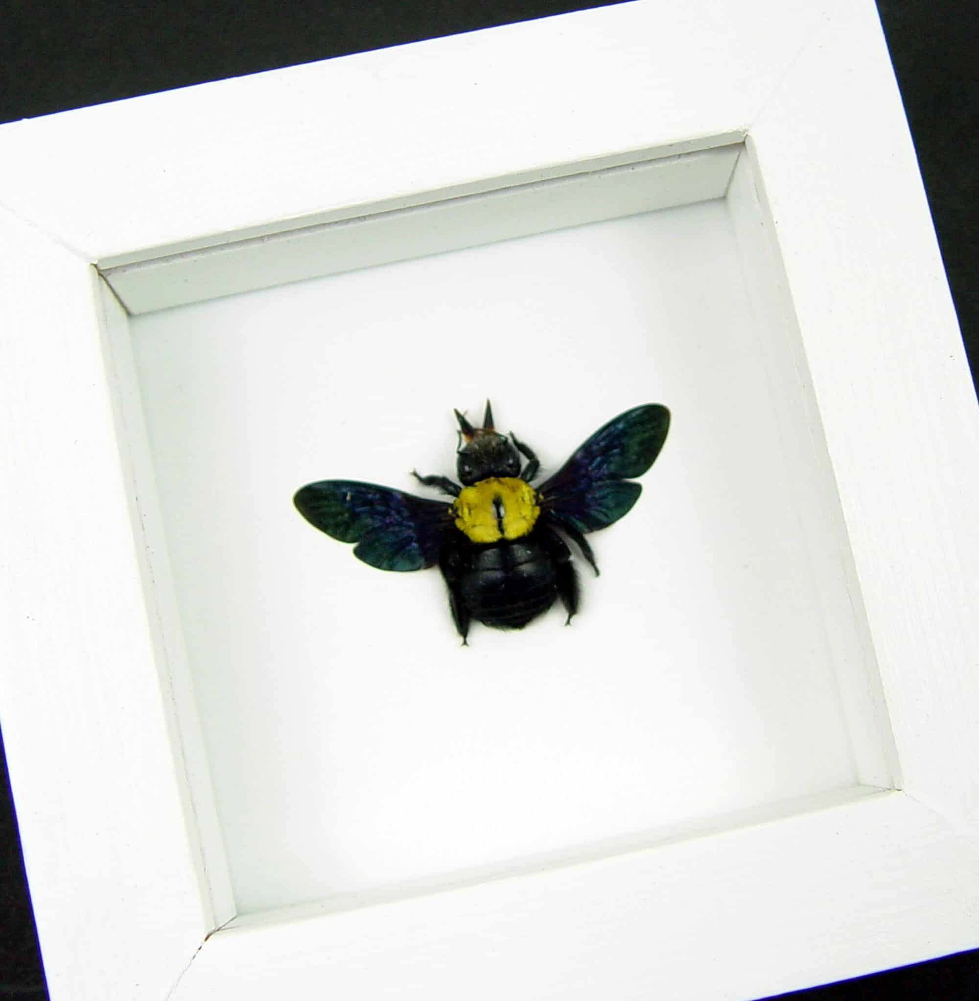 Xylocopa confusa Gold Carpenter Bee Framed Insect Taxidermy Vibrant White Display