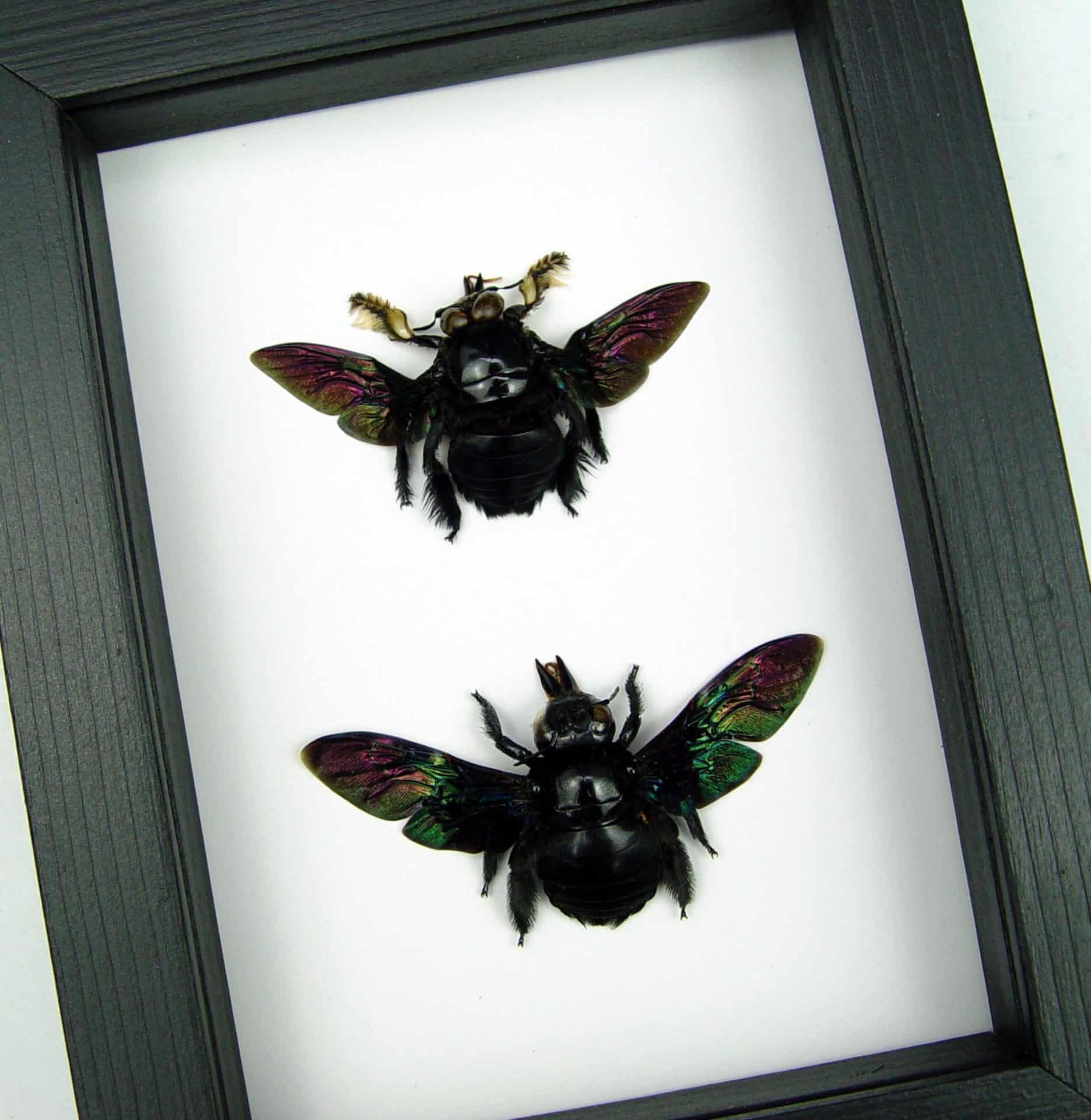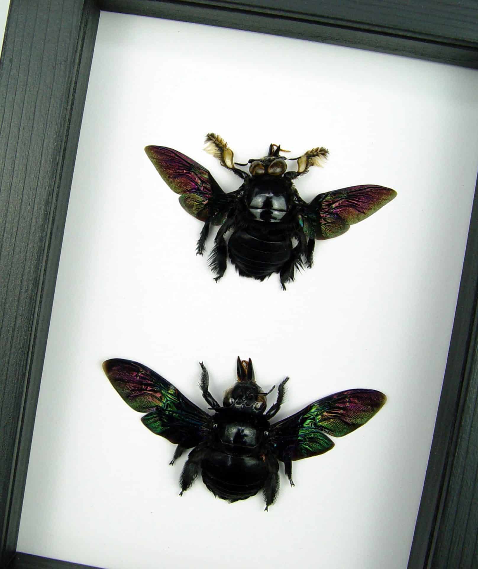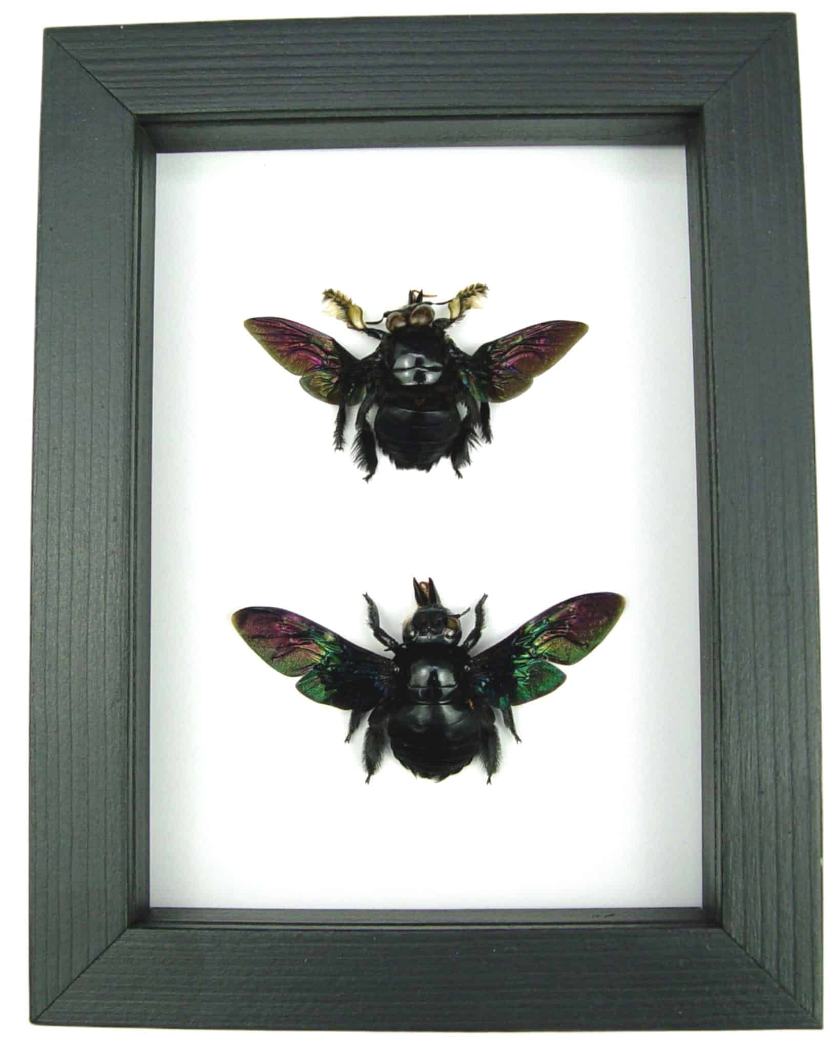 Xylocopa latipes Pair Rainbow Bee Set Real Framed Taxidermy Classic Black Display