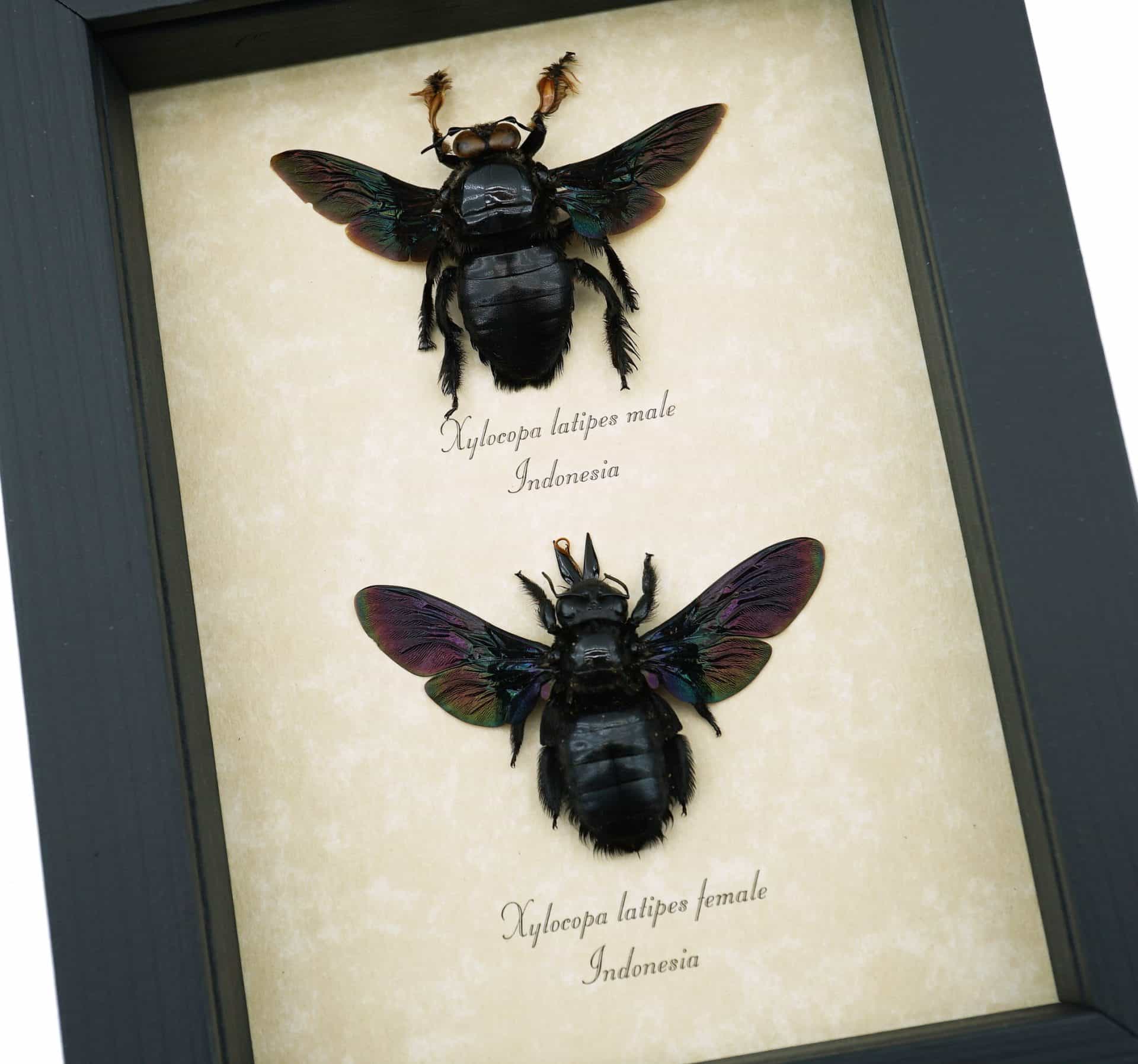 Xylocopa latipes Pair Rainbow Bee Set Real Framed Taxidermy Display